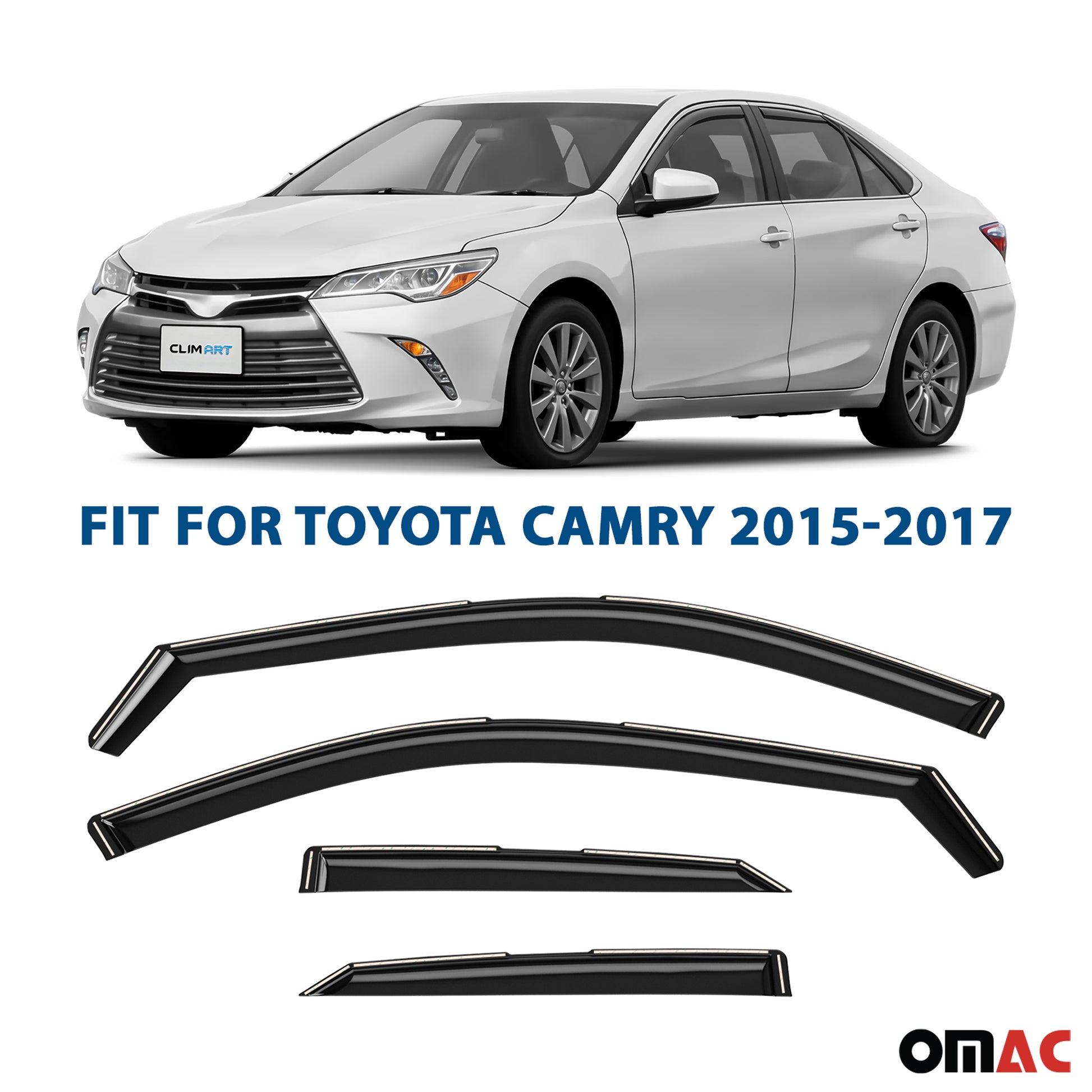Clim Art Wind Deflectors for Toyota Camry 2015-2017 Shatterproof Dark Smoke 4x