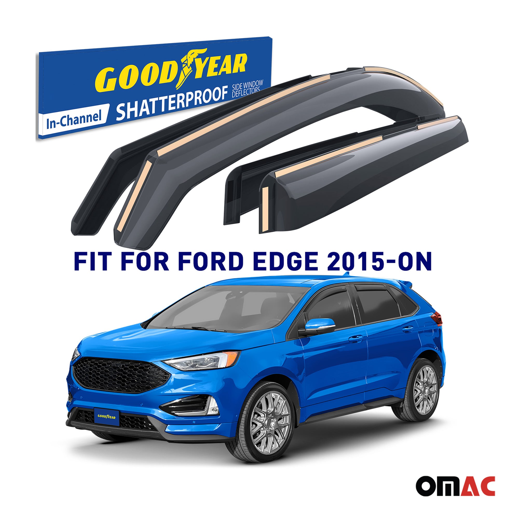 Goodyear Wind Deflectors for Ford Edge 2015-2025 In-channel Premium Smoke 4 pcs