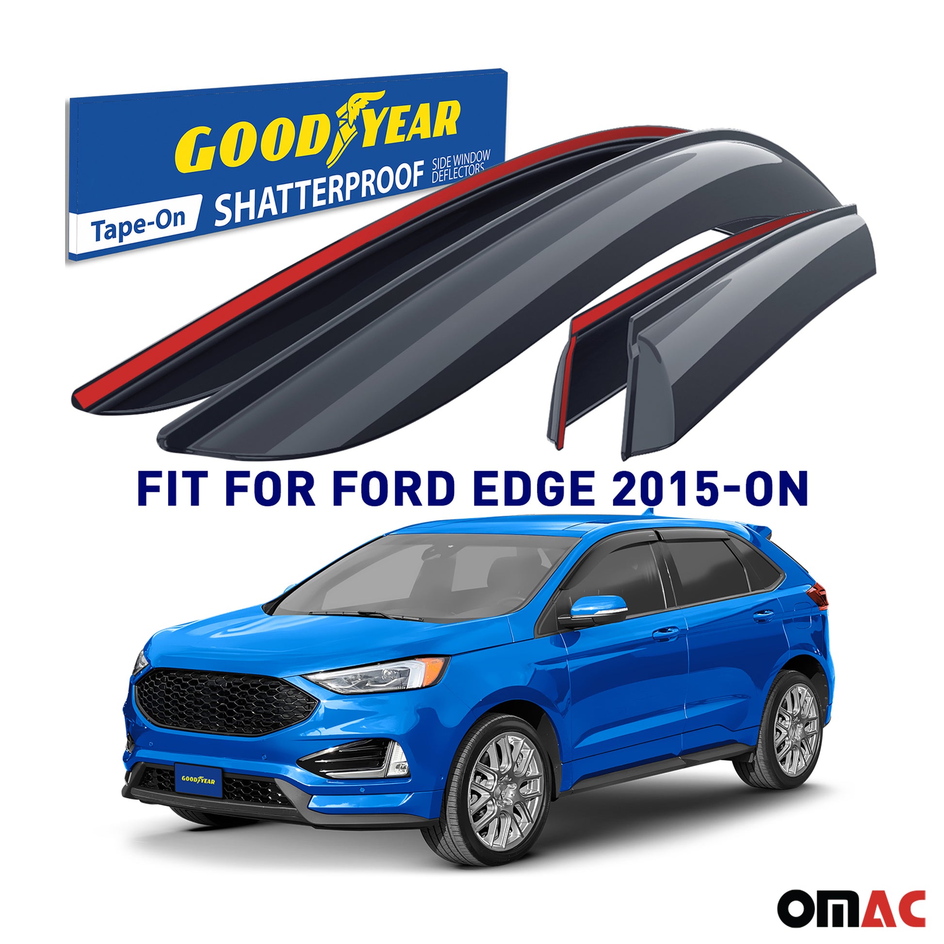 Goodyear Wind Deflectors for Ford Edge 2015-2025 Tape-On Shatterproof Smoke 4x