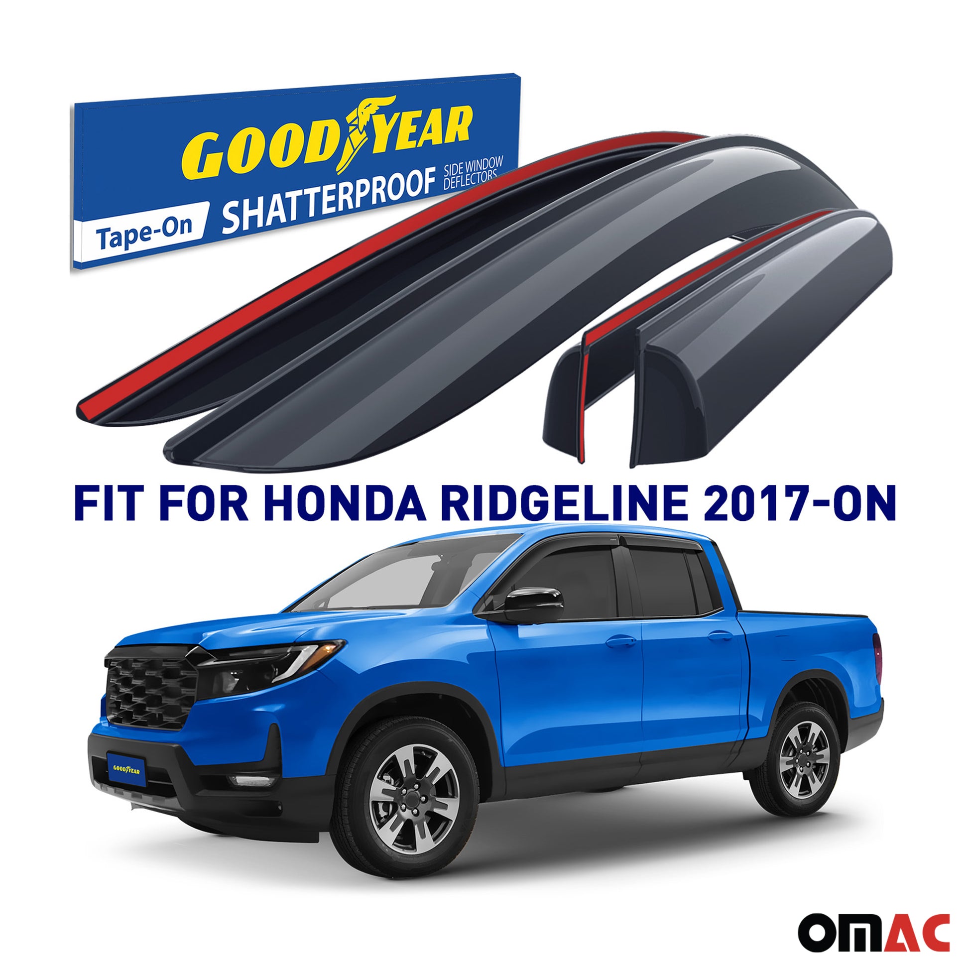 Goodyear Wind Deflectors for Honda Ridgeline 2017-2025 Tape-On Premium Smoke 4x