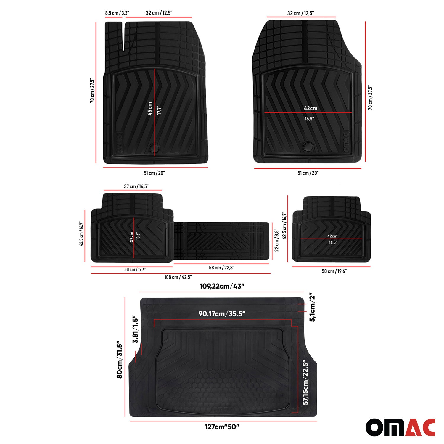 OMAC Floor Mats & Cargo Liners Semi Custom fit Universal for Cars SUV Black