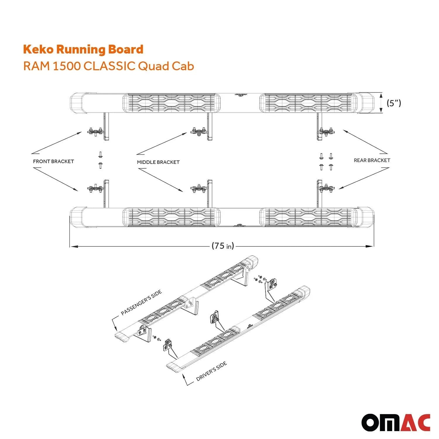 2019-2023 Ram 1500 Classic Quad Cab Running Board Nerf Bar Side Step