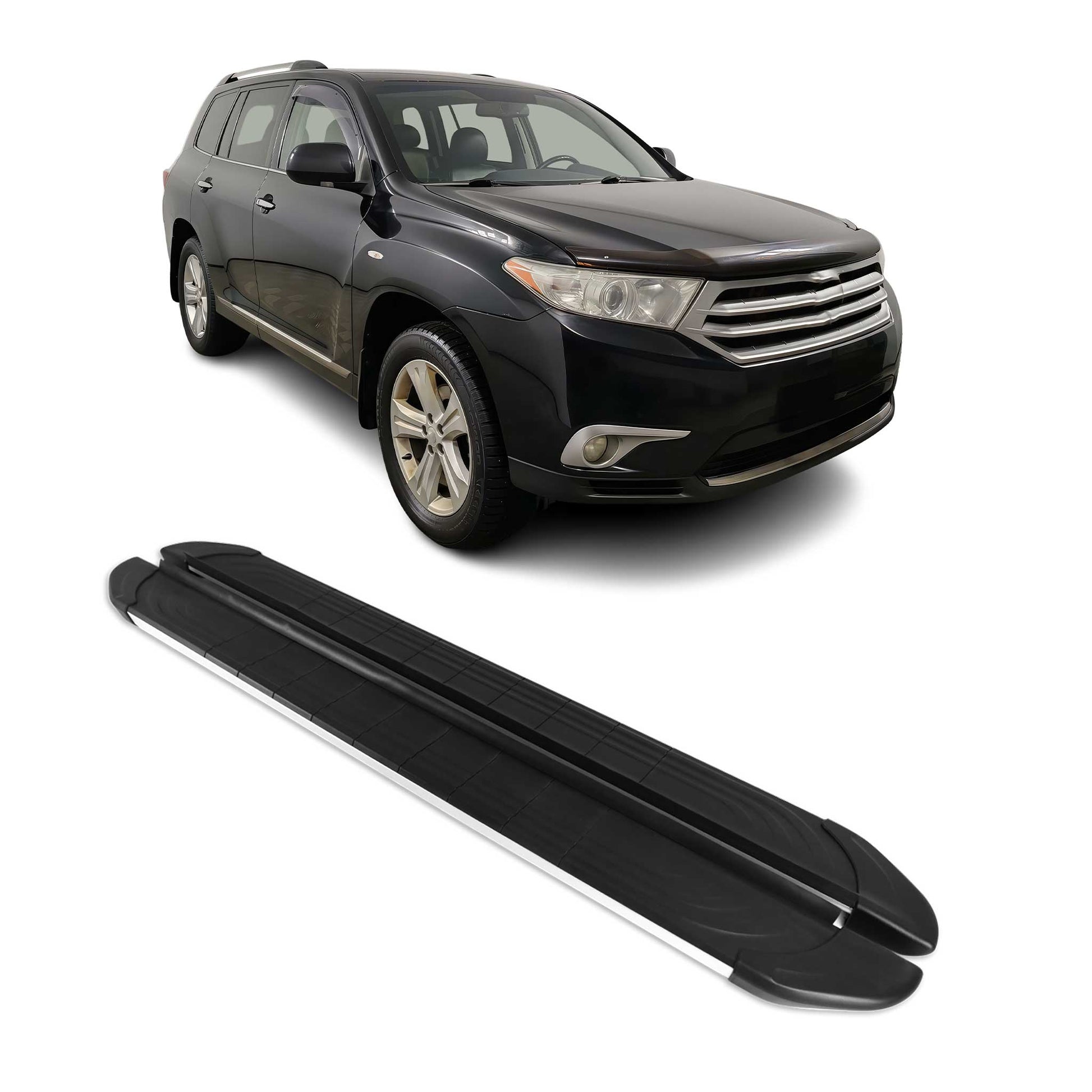 2008-2013 Toyota Highlander Running Boards Side Steps Silver & Black