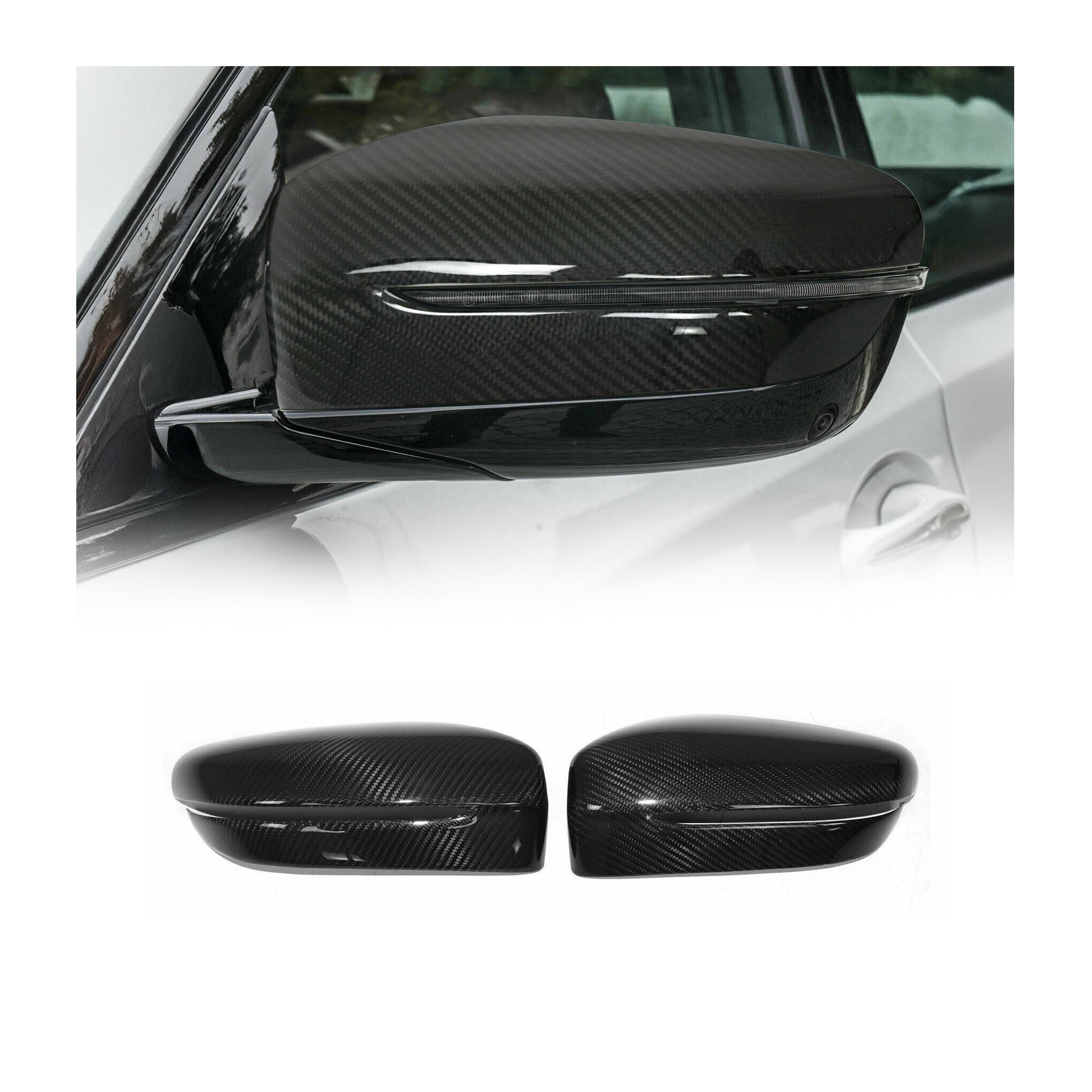 Upgrade your BMW 8-Series with these carbon fiber side mirror covers, adding a sleek, sporty look while protecting your mirrors from scratches and daily wear. Perfect for drivers who want their car to stand out and stay looking sharp, even after frequent car washes or city driving.