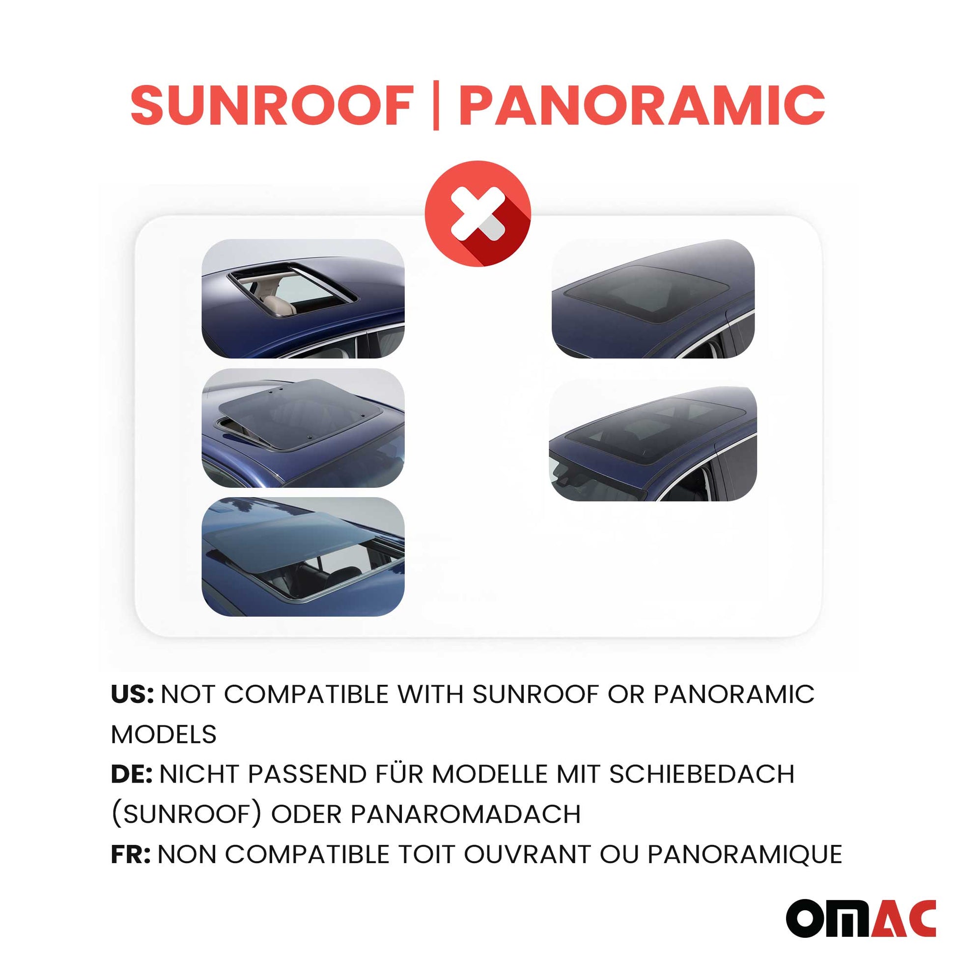 Not compatible with sunroof or panoramic models.