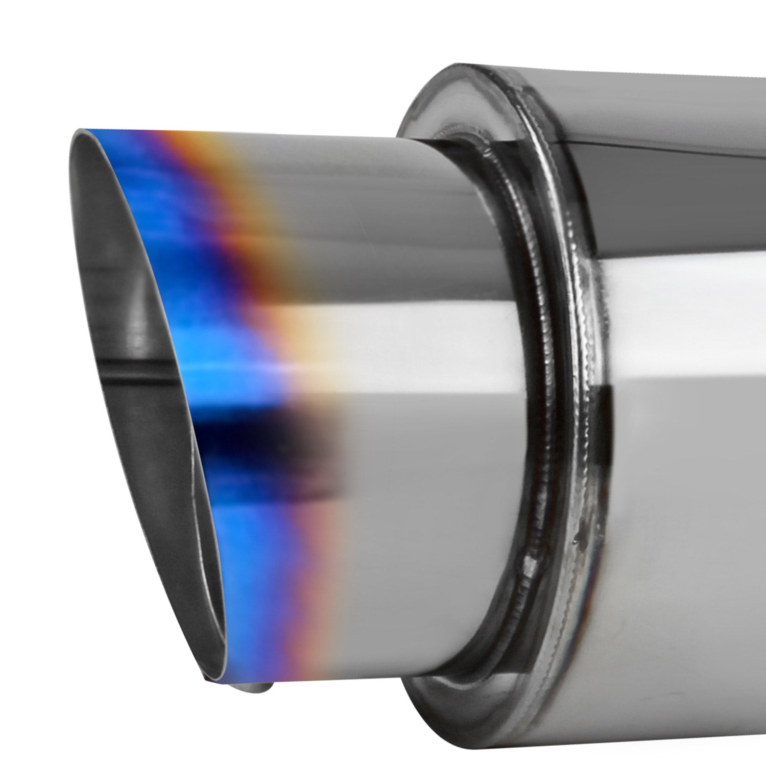 Universal 2.5" Inlet/4" Outlet S. Steel Muffler w/ Fireball Style Burnt Tip