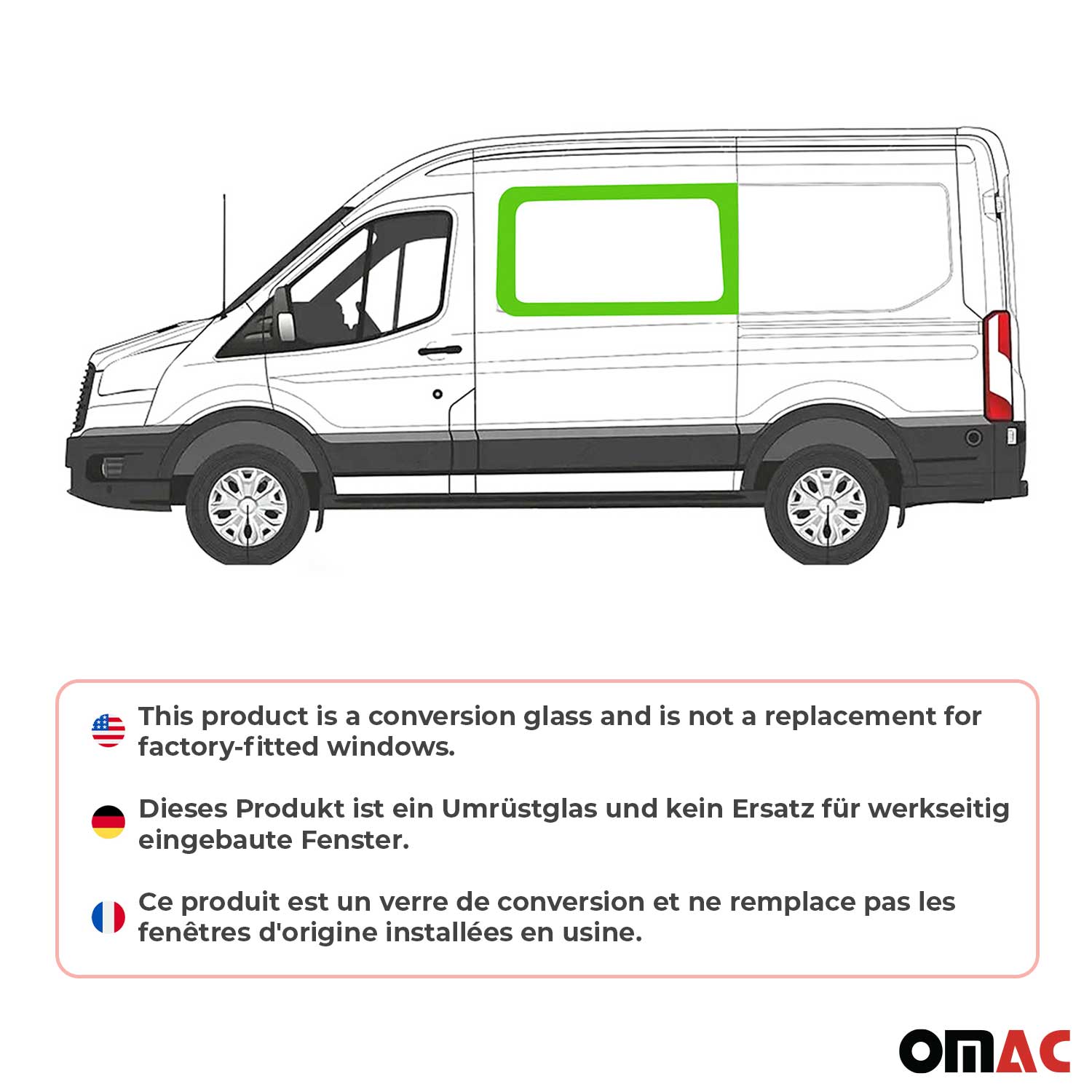 2015-2025 Ford Transit Window Glass Mid-High Roof Front Left Side L2 L3 L4