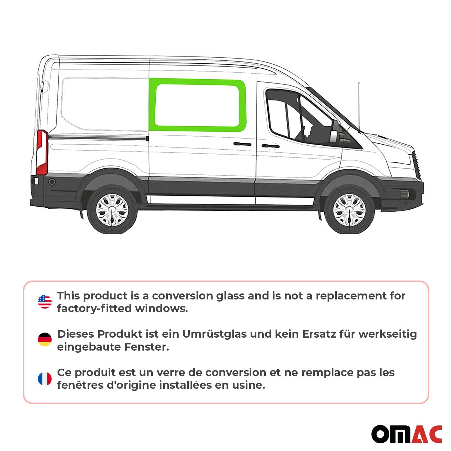 2015-2025 Ford Transit Window Glass Mid-High Roof Front Right Side L2 L3 L4